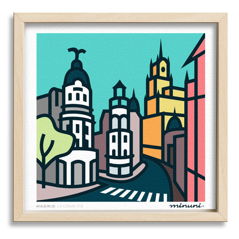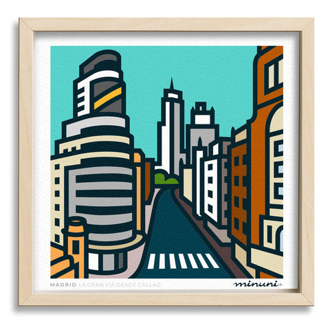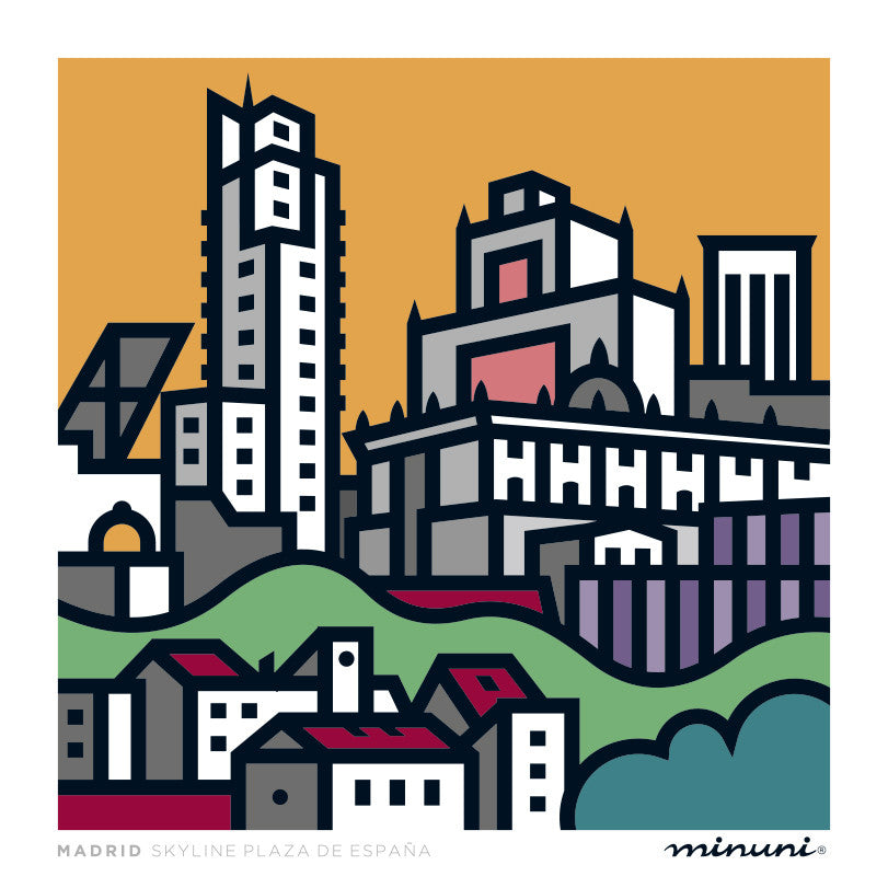 Lámina artística de la Serie España. Skyline Plaza de España en Madrid
