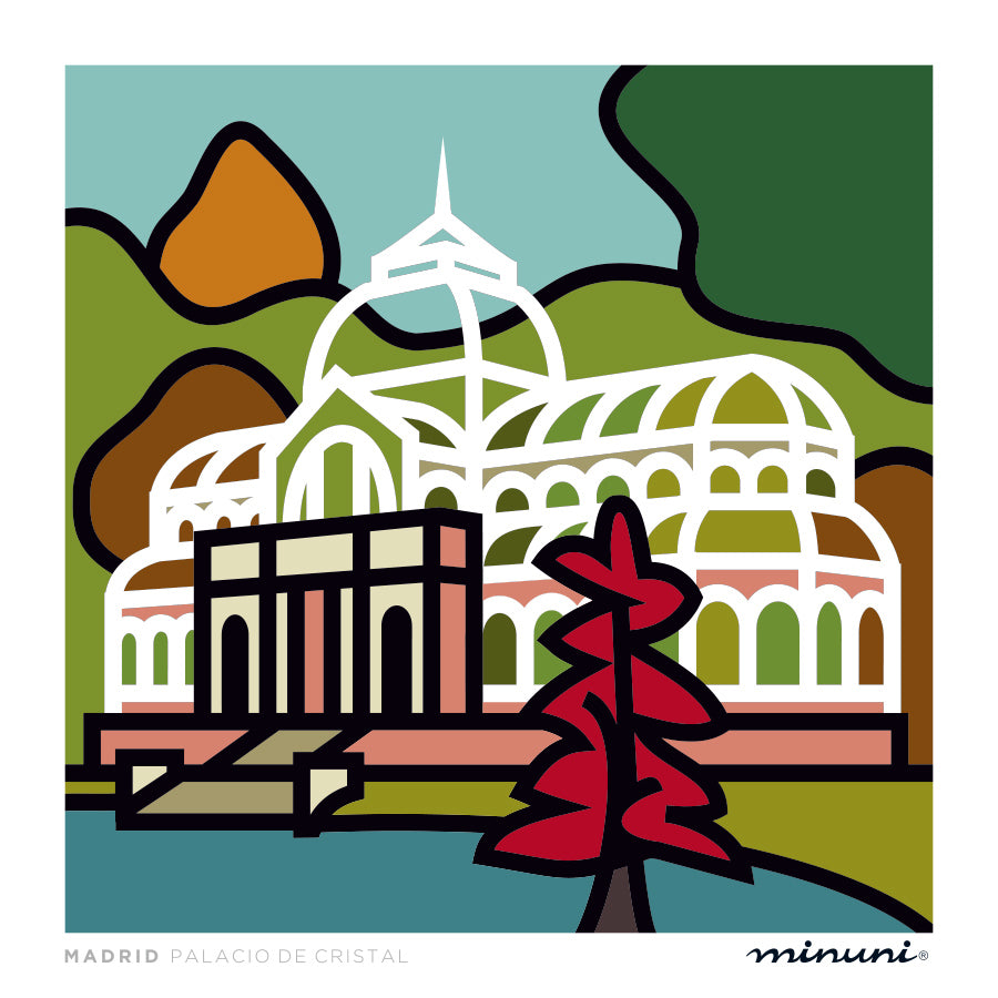 Lámina artística de la Serie España. Palacio de Cristal de El Retiro.