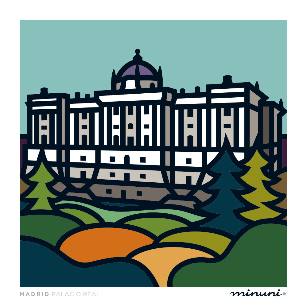 Lámina artística de la Serie España. Palacio Real de Madrid.