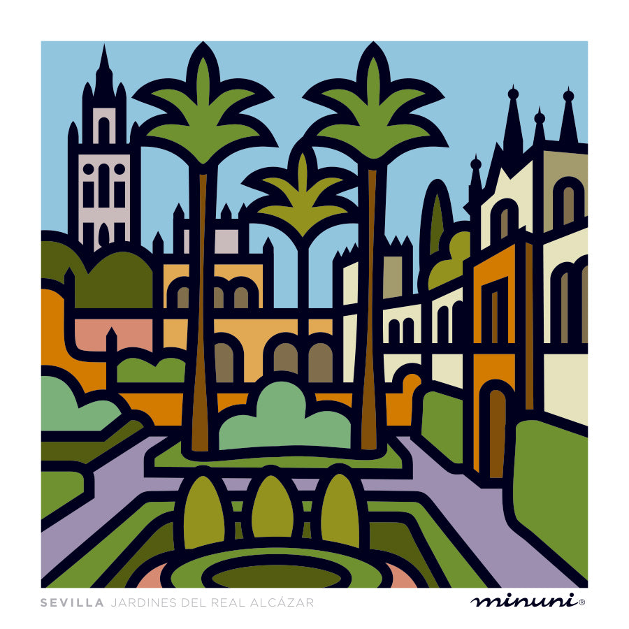 Lámina artística. Jardines del Real Alcázar de Sevilla